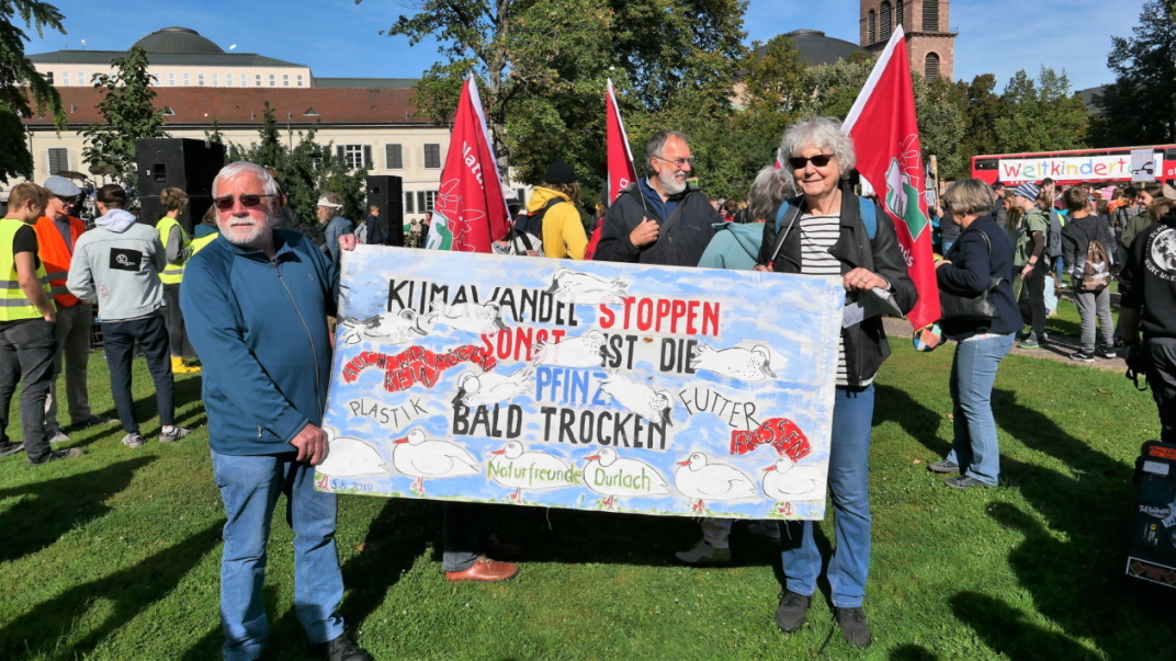 1994 hat die Stadt Karlsruhe mehrere Streuobstwiesen den Naturfreunden Durlach zur Betreuung und Pflege übertragen. Sie befinden sich gegenüber dem Rückhaltebecken an der B3 zwischen Durlach und Wolfartsweier am Geigersberg. Neben alten Äpfel- und Birnbäumen sind dort auch Kirschen, Zwetschgen, Quitten- und Nussbäume vorhanden.