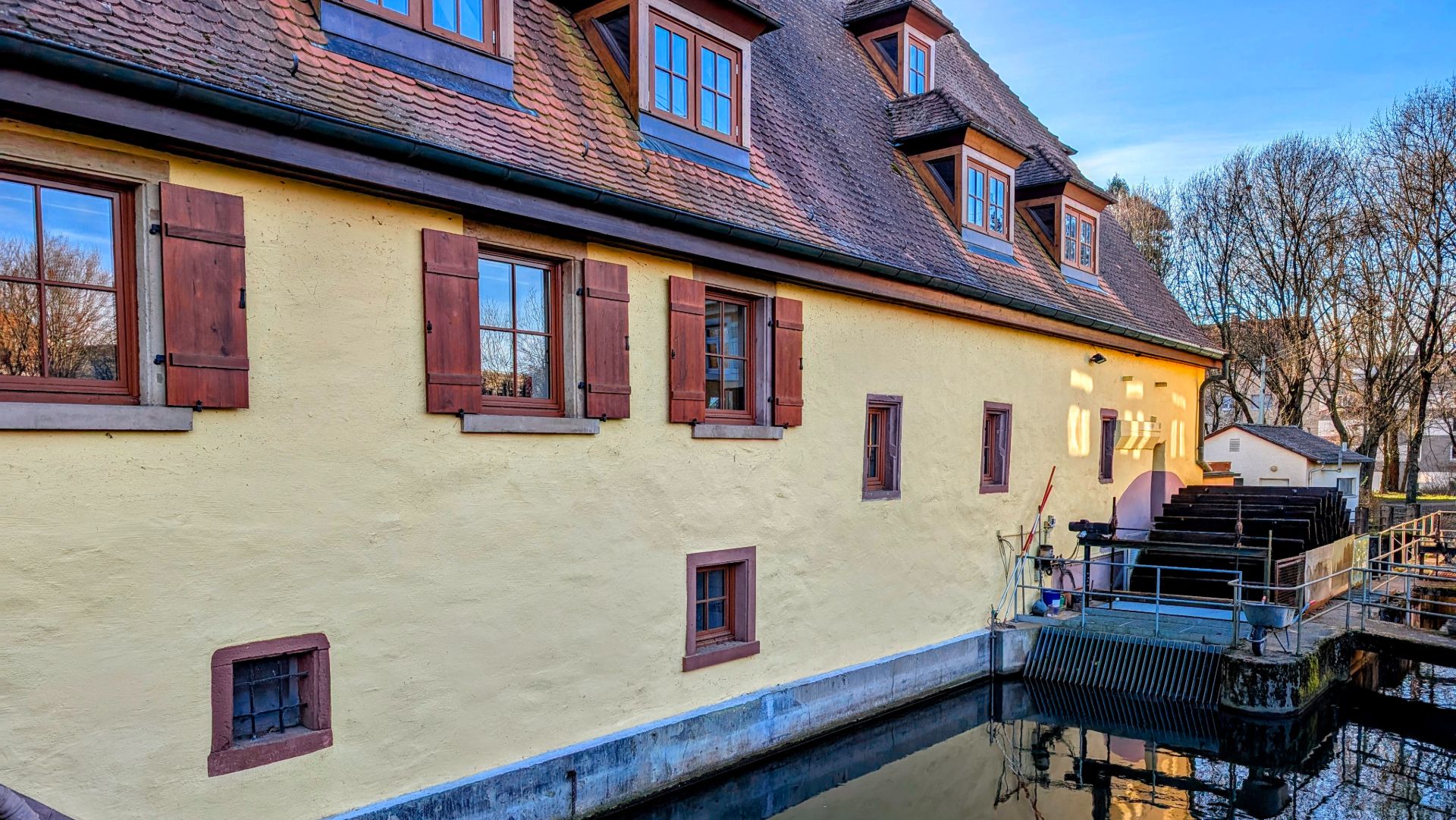 Mit dem Erwerb der historischen Obermühle im Jahr 1987 fassten die NaturFreunde Durlach den Entschluss, an dem aus dem 15. Jahrhundert stammenden Gebäude ein Laufwasserrad, wie es die Mühle im 18. Jahrhundert besaß, neu zu installieren. Die NaturFreunde wollten ein Zeichen setzen und als erster Naturfreundeverein mit einem Kleinwasserkraftwerk regenerativen Strom aus dem Flussbett der Pfinz erzeugen. Heute ist das Wasserrad für viele Besucher aus nah und fern ein Stück gelebte Kultur- und Industriegeschichte. Für Kindergärten, Schulen und andere Besucher lässt sich hier die Stromerzeugung mittels Wasserkraft anschaulich beobachten. Von außen sichtbar ist das Wasserrad und der Leerschuß mit Wehranlage. Getriebe, Generator und Steuerung sind im Keller der Obermühle untergebracht.